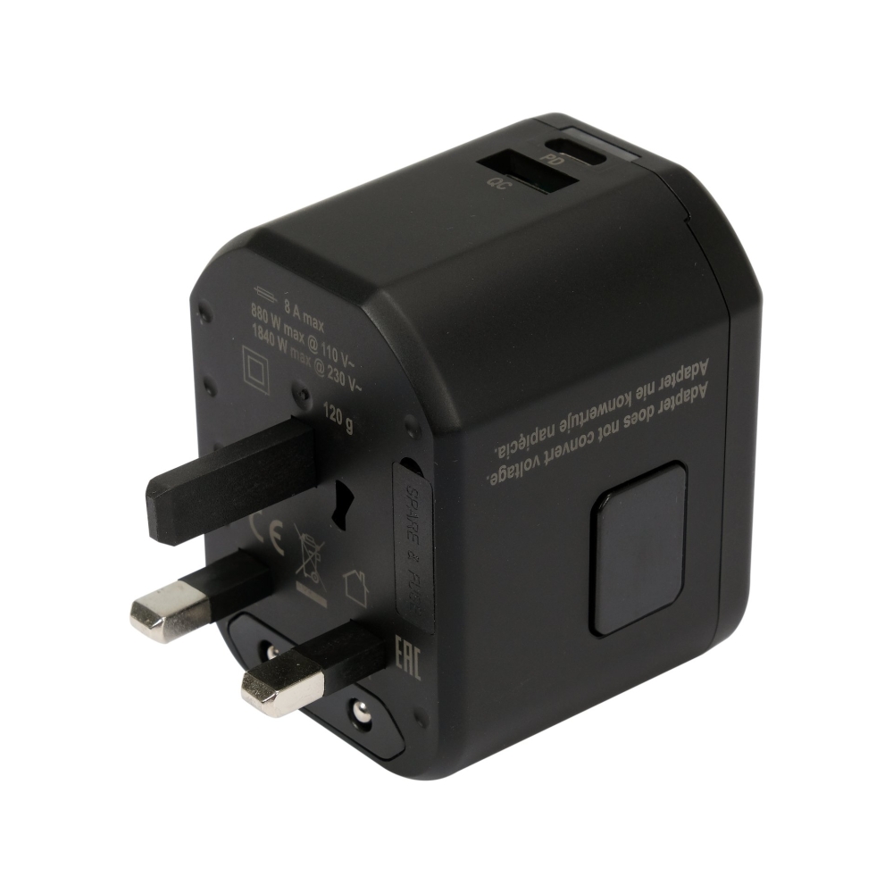 ADAPTOR UNIVERSAL DE CĂLĂTORIE, 1 PORT USB + 1 PORT USB-C