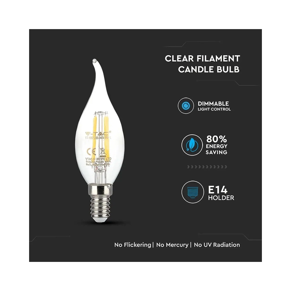BEC E14 CU FILAMENT LED 4W 2700K DIMABIL