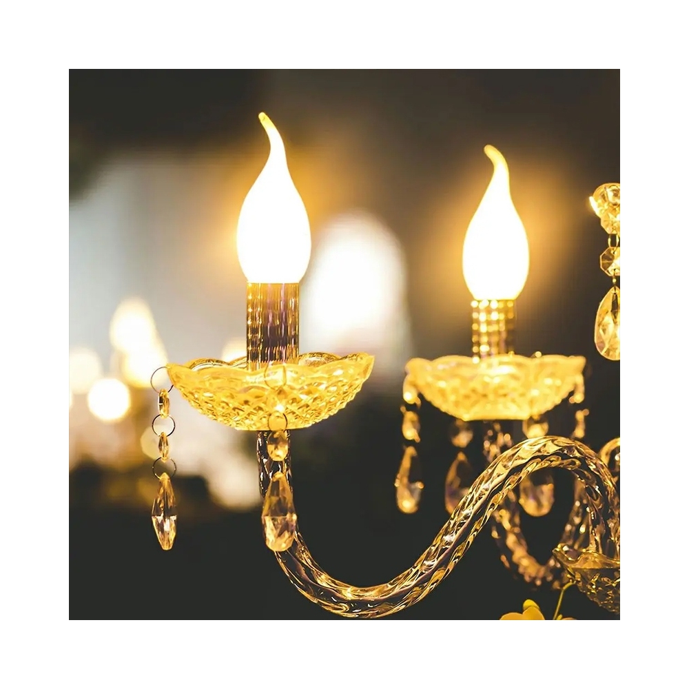 Bec economic cu LED, forma flacara de lumanare. Poate fi utilizat cu variator de intensitate (dimmer). Alimentare: 220-240VAC, 50 Hz Flux luminos: 400 lm Unghi de dispersie lumina: 300 grade Putere: 4 W (echivalent cu bec incandescent de 32 W) Soclu E14 Numar de cicluri pornit/oprit: min. 15.000 Durata de functionare: 20.000 ore Temperatura de culoare: 2700 K (alb cald) ATENTIE: Inainte de instalare, opriti alimentarea cu energie electrica in soclul in care doriti sa montati becul. Produs destinat reciclarii ecologice! Nu aruncati produsul la gunoiul menajer dupa utilizare!