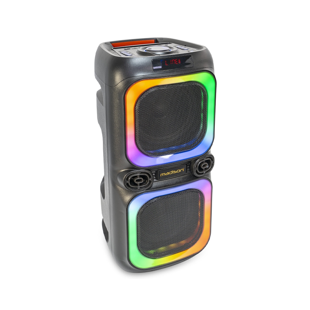 NASH60 este o boxă activă alimentată de baterie, prevăzută cu 2 difuzoare de 8" care oferă o calitate înaltă a sunetului, dar și două efecte de lumină LED pătrate în jurul wooferelor. Redați muzică de pe platforma preferată de streaming prin Bluetooth, fie de pe smartphone, tabletă sau computer, sau conectați 2 microfoane și o chitară și creați-vă propria muzică!