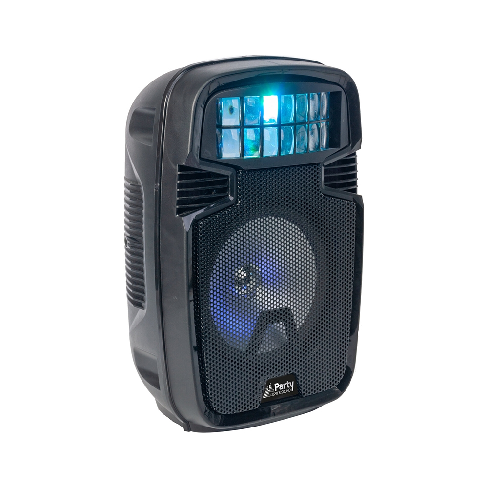 Boxă activă de dimensiuni compacte, portabilă, autonomă, cu woofer iluminat cu LED și efect de lumină de tip Derby, pe care o puteți configura rapid oriunde doriți. Nu este necesară alimentarea electrică, deoarece bateria internă poate fi încărcată prin portul USB cu un încărcător normal pentru smartphone. Datorită dimensiunilor reduse, se potrivește perfect în camerele pentru adolescenți sau studenți.