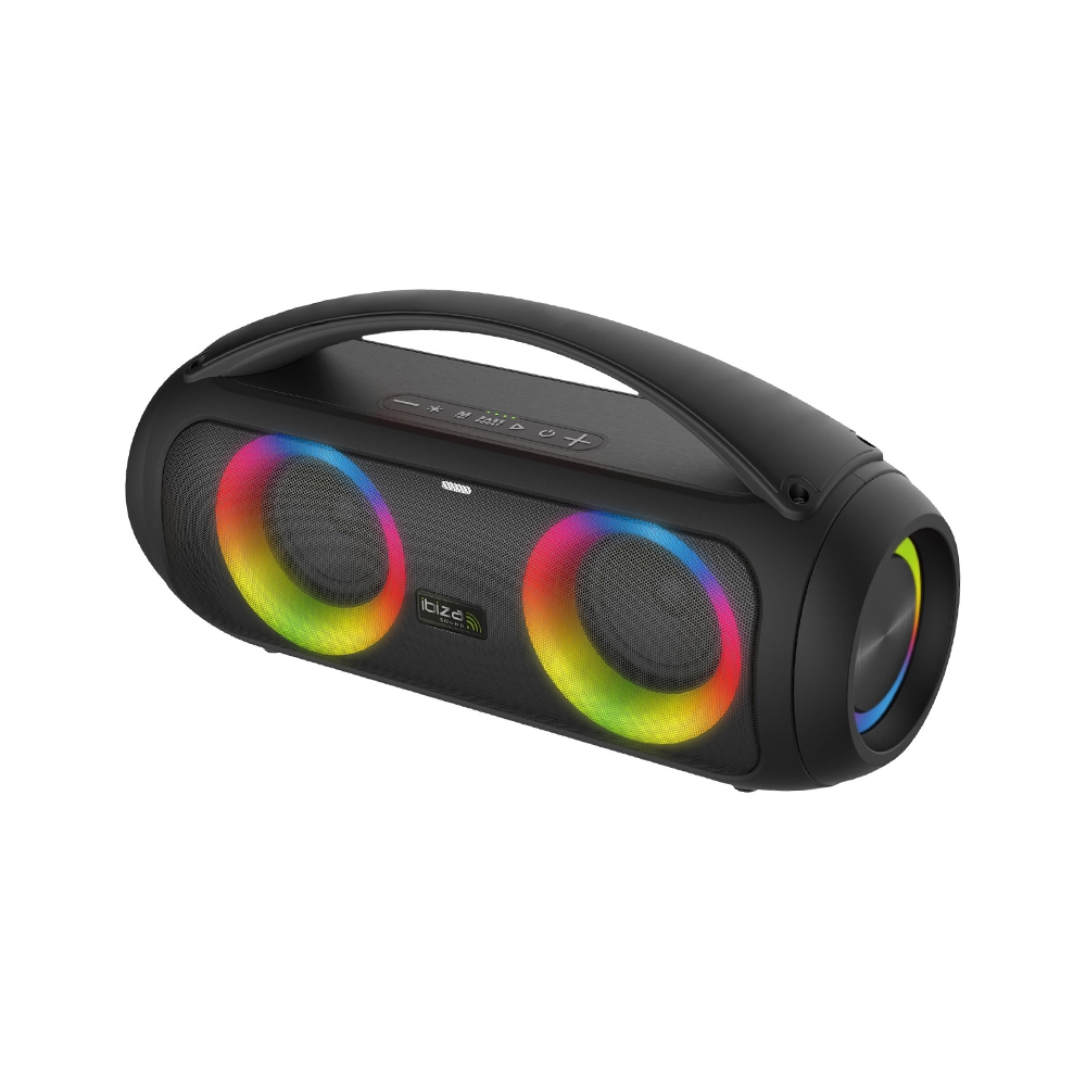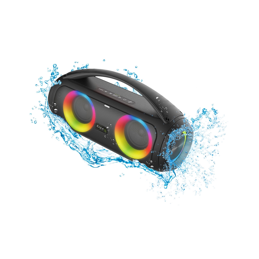 Difuzor portabil mic, rezistent la stropire, care va merge cu tine oriunde te duci. Cu difuzoarele iluminate și intrarea pentru microfon, este întotdeauna gata de petrecere, indiferent dacă doriți să dansați în ploaie sau lângă piscină.