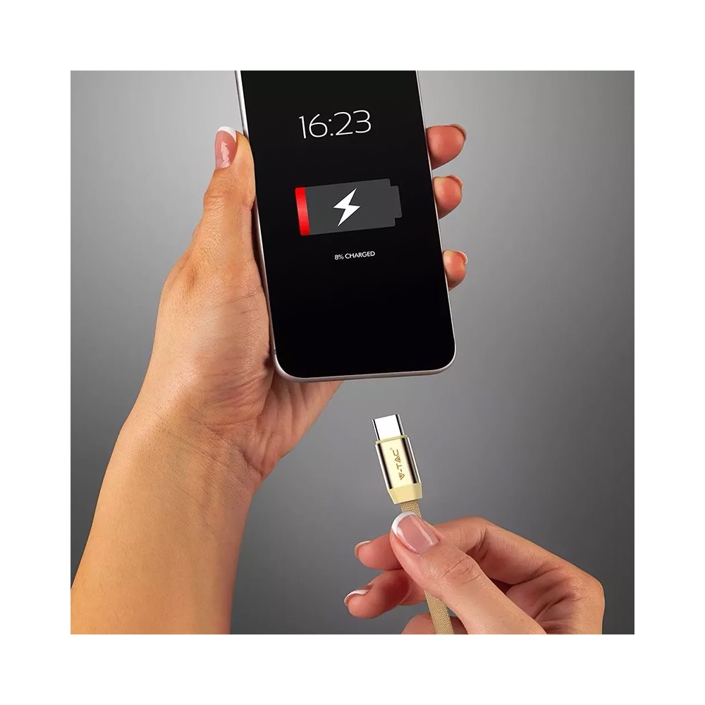 Cablu de alimentare USB cu mufa tip USB tip C, lungime 1m, culoare auriu. Curent maxim: 2.4 A