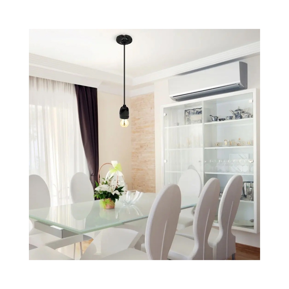 PENDUL TAVAN SOCLU E27 PORTELAN - NEGRU